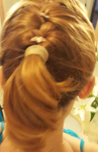 п.с. вот такую сделала прическу - вверху "дракончик" с цветочками