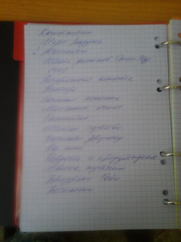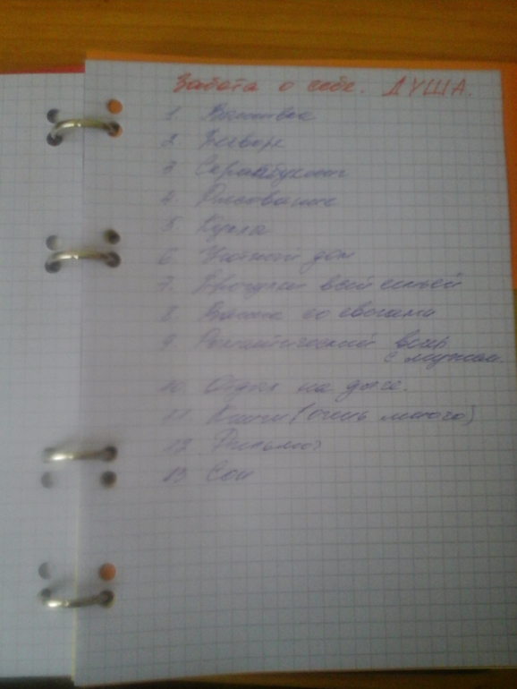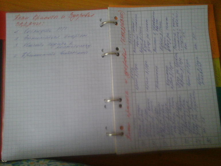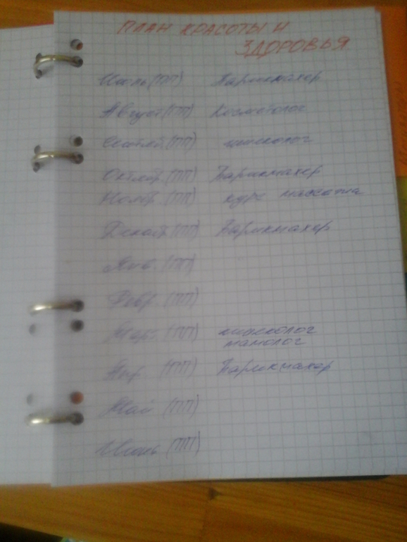 Последнюю страничку завела еще 6 числа, т.к. надо активно заниматься лечением после операции, а я в этом плане очень не организованная. Думаю что план красоты и здоровья тоже буду корректировать и капитально, но пока так. Все экстренные и необходимые телефоны всегда записываю в отдельную книжку, думаю и в КЖ тоже перепишу ( лишними не будут). По факультативу все давно разобрано))