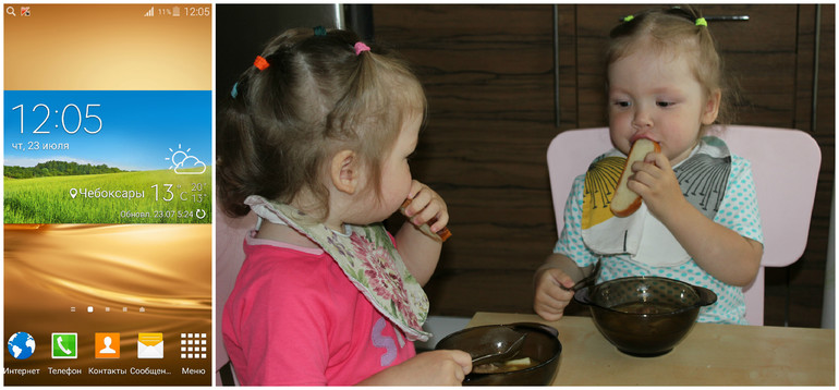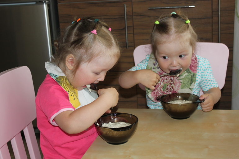 Наступает время обеда. Мы едим супчик с телячьими фрикадельками.
