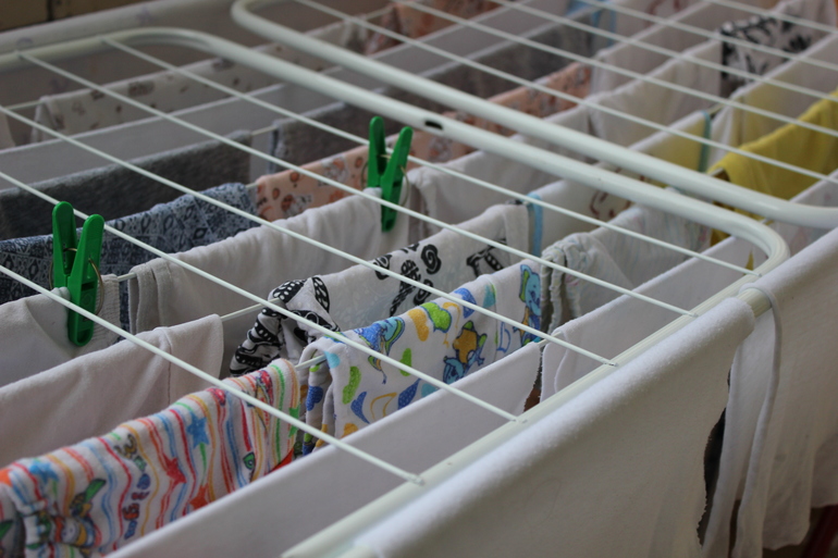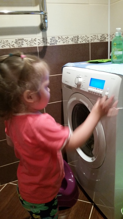 Машинка уже закончила свой цикл, вывешиваю белье на балконе