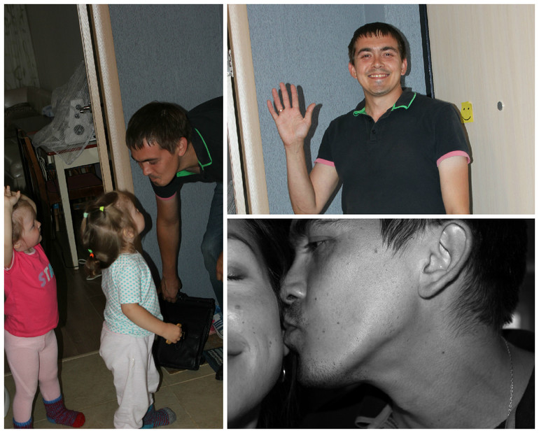 Наш папочка уже уехал на работу, он - ранняя пташка.
