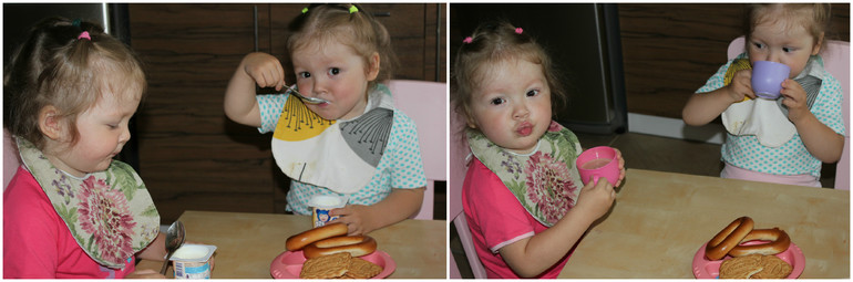 Сегодня девочки остались дома со мной, т.к. Танюшка неважно себя чувствует (у нас третий день высокая температура). Но в целом мы придерживаемся режима дня детского сада.