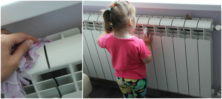 Естественно, мои попытки протереть радиатор не остаются незамеченными: девочки спешат помочь маме)