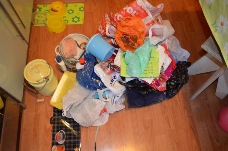 Это все что я выбросила, миски случайно попали в кадр. Бидончик маме увезу.