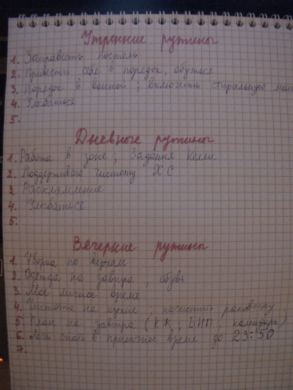 Приветик. Дневную рутину составила, разделила рутины на три части. Получилось вот так: