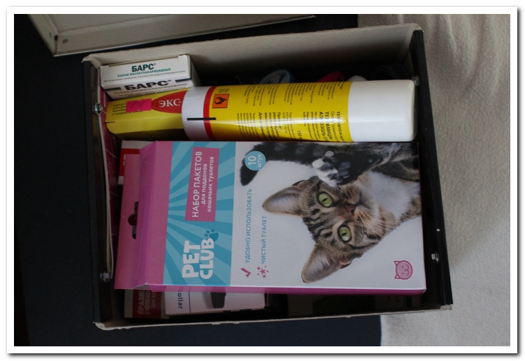 Неудачные мешки для кошачьего горшка в мешки для мусора, старые лекарства - в ведро, туда же остатки антицарапок, с тех пор как переехали в деревню и кошки гуляют вдоволь на улице - это небезопасно. Итог: не полная коробка, а треть. И все видно.
