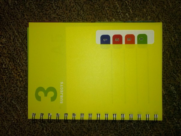 Тетрадь для рецептов к сожалению не на кольцах, но с разделителями: Первые блюда, мясо+рыба+птица, гарниры, выпечка, заготовки.