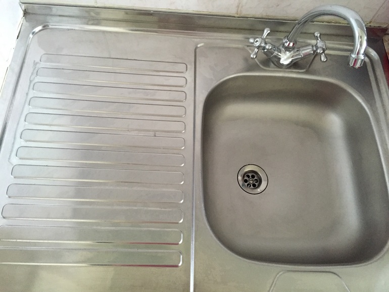 Конечно, я очень расстроилась, но потом одела перчатки и вперед! Раковину залила горячей водой, но без отбеливателя. Потом просто оттерла ее Пемолюксом. Далее хорошенько сполоснула водой, протерла полотенцем, в конце добавила немного средства для мытья стекол для блеска.