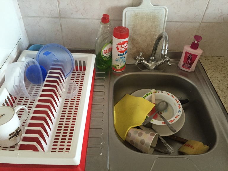 Сушилку убрала в сторону, пока мыла раковину))) я ее периодичекски мою и убираю, а так она у меня обычно стоит на том же месте)))))