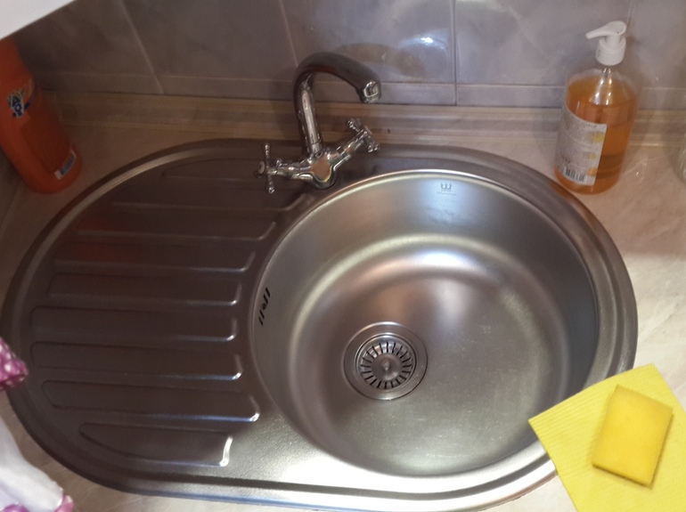 Раковина блестит. Вытираю-намываю я ее по вечерам, перед сном. В течении дня постоянно что-то мою: то посуду, то ребенка, то еще что-нибудь, и если после этого ее еще и насухо вытирать каждый раз, то вообще можно от нее не отходить ))) Пользуюсь я Кометом, я им вообще для всего пользуюсь, оттирает все, что другим не под силу )))) Ну и фото. До (она тут не особо и грязная, просто после выходных подуставшая):