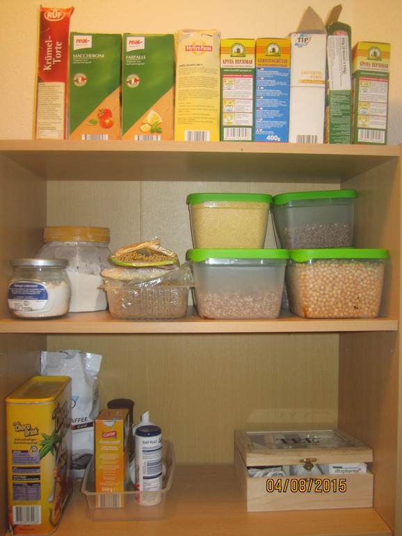 Отчитываемся по заданиямВыдвижных ящиков на кухне у меня нет, все хранится на полках. Сыпучие хранятся в трех местах: