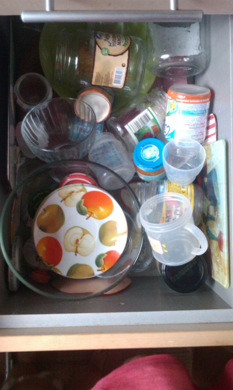 не могу придумать как лучше организовать в нем пространство, посуду хранить неудобно, если хранить банки, выходит бардак, так что буду рада советам))