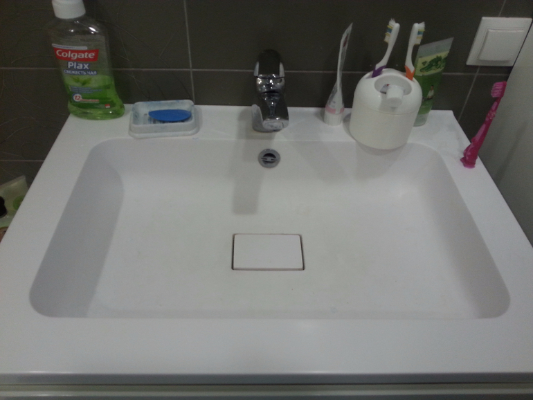 Средствами я пользуюсь стандартными - Пемолюкс жидкий и отбеливатель. Ну и для смесителей средство для мытья окон - чтоб блестело!! (хоть что-то я вынесла из многочисленых неокончченных взлетов)