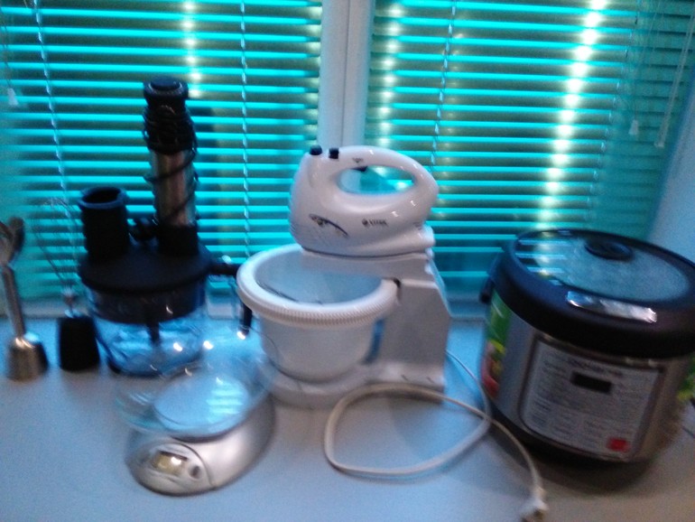 Мои помощники это мультиварка, миксер с чашей, так удобно, сама крутится. Ну и блендер с функцией комбайна.Есть еще терка оригинальная бернер, но не могу я к ней приноровится, не нравиться