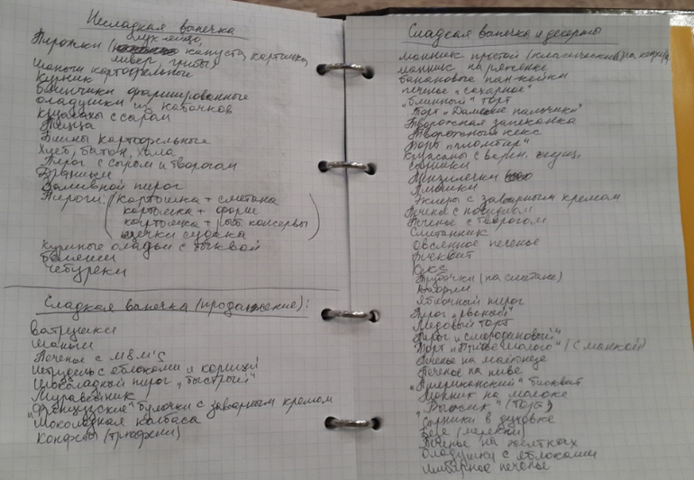 Поскольку скромностью я не страдаю в этом плане и готовить умею все, что есть у меня в записях, да и в интернете (я имею в виду не слишком сложные, повседневные блюда). Ну а чего не приготовить по рецепту-то. Из 100 рецептов может только 1 или 2 совсем гадость получается, но это скорее не моя вина, а рецепта ))) В итоге решила внести в список то, что я уже пробовала сама готовить. Вот что получилось: