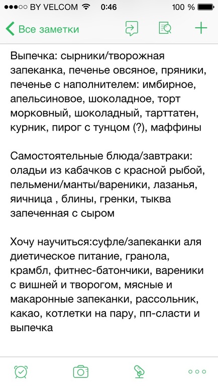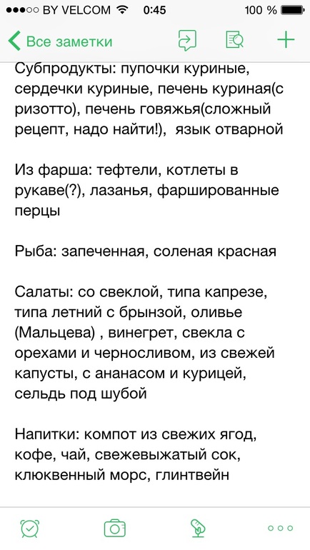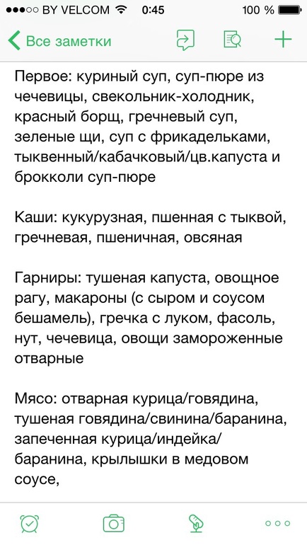 Базовое меню написала в Эверноут: