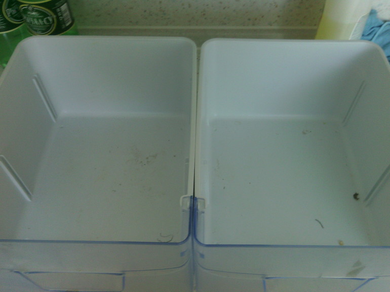 Работала в зоне 2, намывала холодильник, в прошлый раз это дополнительное задание не выполнила, сейчас отработала) ящики для овощей до и после:
