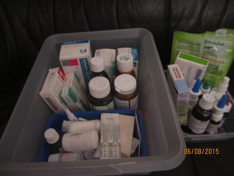 Отчитываемся по заданиямАптечка у меня хранилась в двух лотках. В маленьком были собраны средства от простуды, кроме антибиотиков. Во второй все остальное. Вот как это выглядело