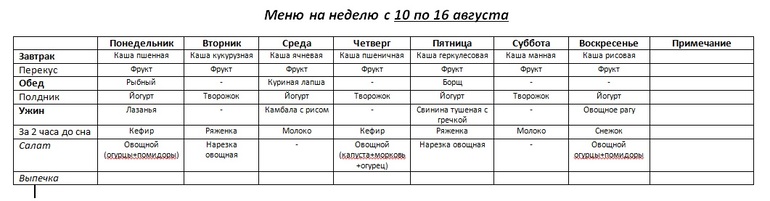 Меню буду корректировать когда младший пойдет в сад а я на работу. пока так.