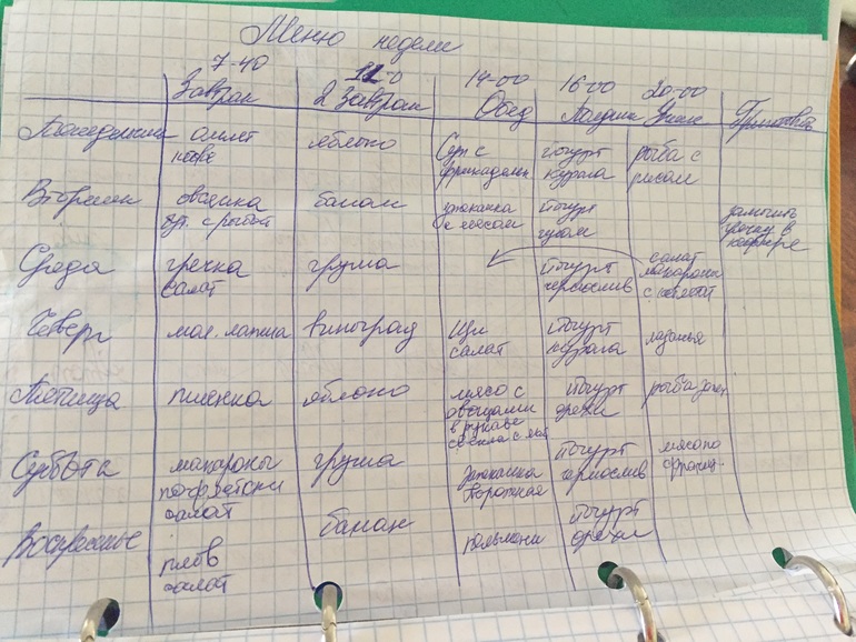 Отчитываемся по заданиямменю составила на след неделю,вечером буду знать точное расписание тренировок среднего( выкладывают в пятницу на неделю вперед),поговорю с воспитателем по времени посещения сада младшего-возможно увеличим до сна и тогда уже скорректирую меню окончательно. Скорее всего выпадет обед. Выходные расслабиться не придется.будут гости.
