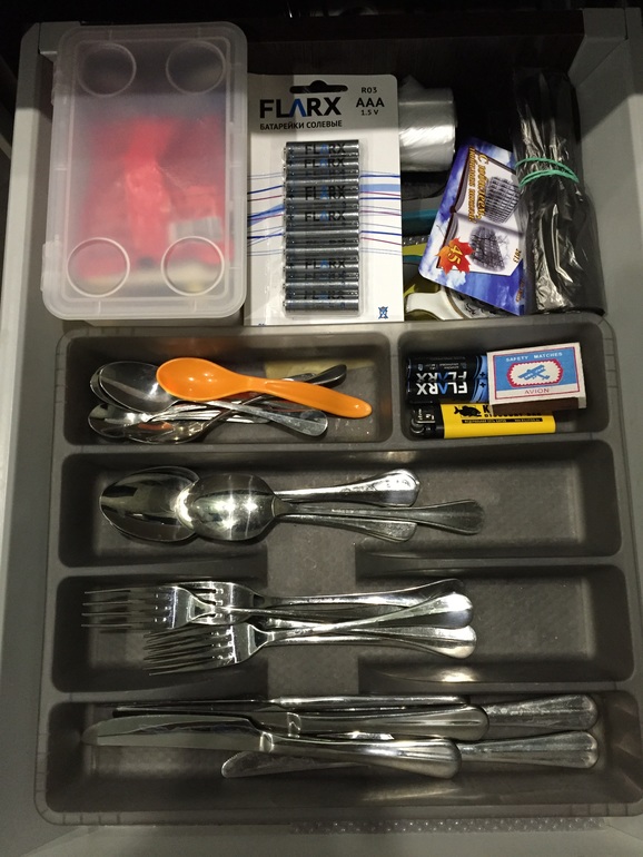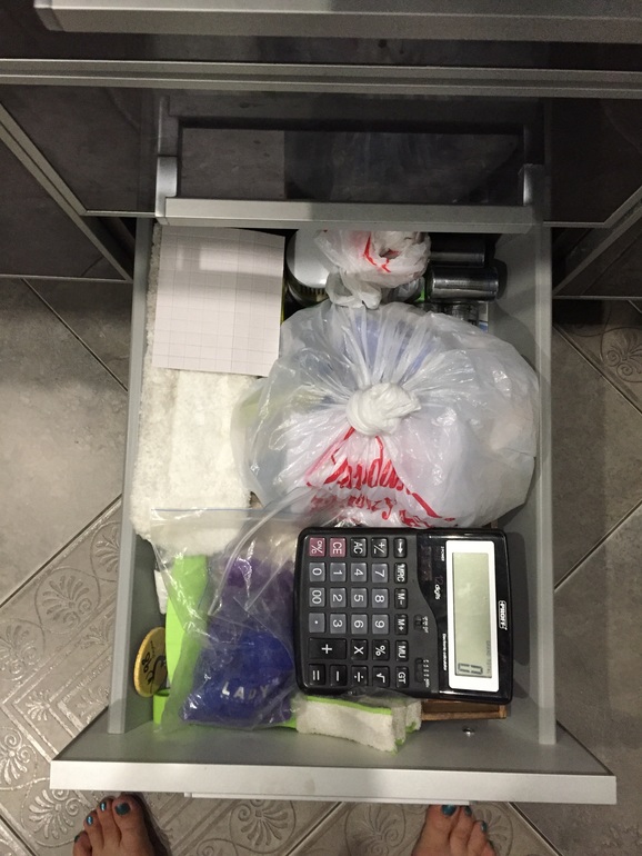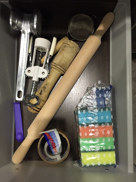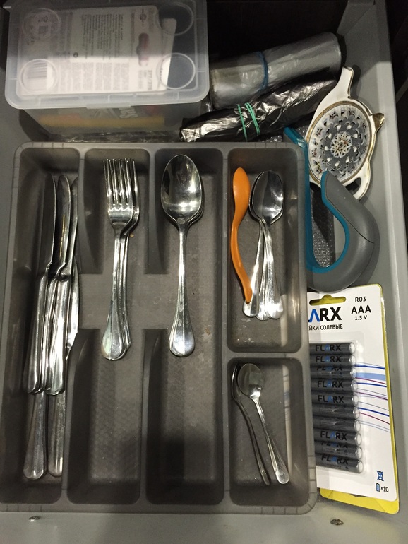 Отчитываемся по заданиямВыдвижных ящиков на кухне у меня 8( просто люблю выкатные ящички). В двух с кастрюлями и сковородами поработала заранее( хотя все-таки переместила одну кастрюлю для переезда в деревню). Ящички перебрала и выкинула " мужские загоны" какие-то запчасти непонятно от чего,визитки,шурупы, термопленки-опять не знаю от чего. Оставила мыльно-рыльное в одном пакетике-удобно для тренировок-поэтому не выкинула