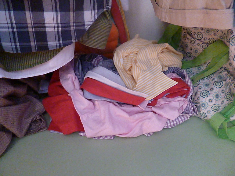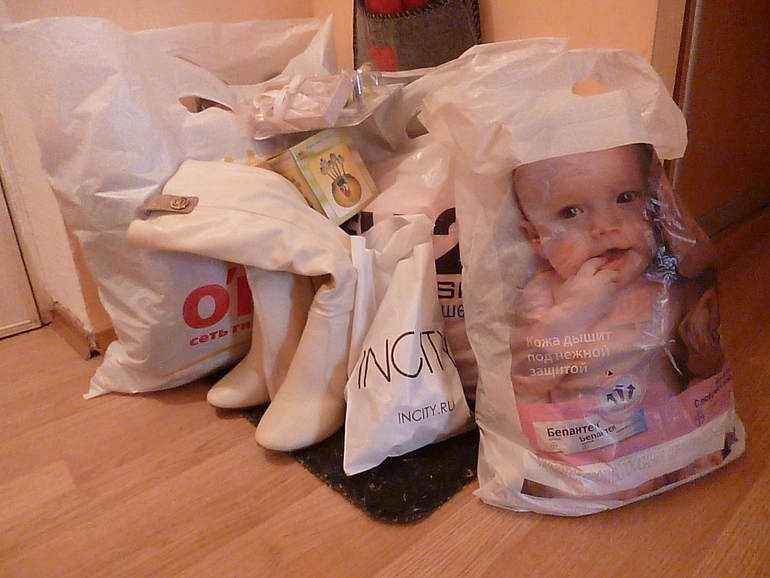 разобрала детские вещи - две коробки и пакет, разгребла антресоль на кухне и нижнюю полку в нашем с мужем шкафу - там какой-то ком лежал )))