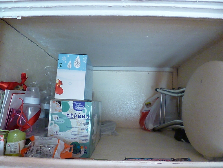 дальше - антресоль на кухне; фото ДО у меня че-то потерялось. но вот что я оттуда выгребла: