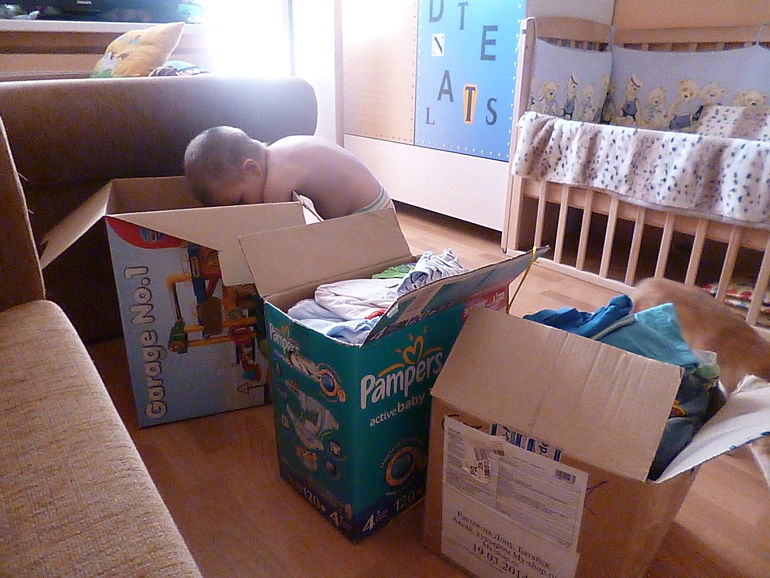 с помощником в главной роли. чуть снова мне всё не перепутал ) это коробки До. уже почти ничего не влазит. там и вещи маленькие, но которые я решила оставить. и вещи на вырост и вещи на "отдать" - свалка, короче.