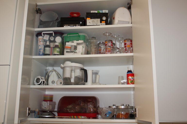 Может им нужно какое-то другое место найти? Сейчас они живут в верхнем ящике кухни в 2 пластиковых контейнерах. На верхней полке в одной коробке - бинты, шприцы и все для ран, во второй - травы. Рядом отдельно лежит тонометр. На второй полке снизу храню те лекарства, которые пьем в данный момент. Вот так