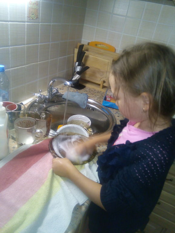 А ещё.... Лиза уже как три дня посуду моет после ужина, помощница моя золотая. Мне очень приятно. Я лишь ставлю на сушку и протираю раковину.