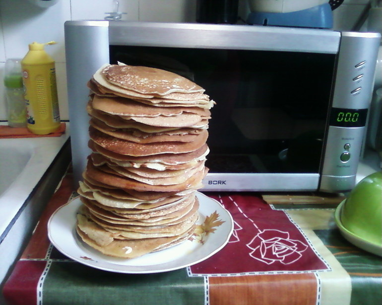 11. Эта стопочка блинчиков- обычное количество, (фото с той самой поварешки) работы около часа +/-. Меньше чем на трех сковородах печь считаю лишней тратой времени, обычно их четыре)).