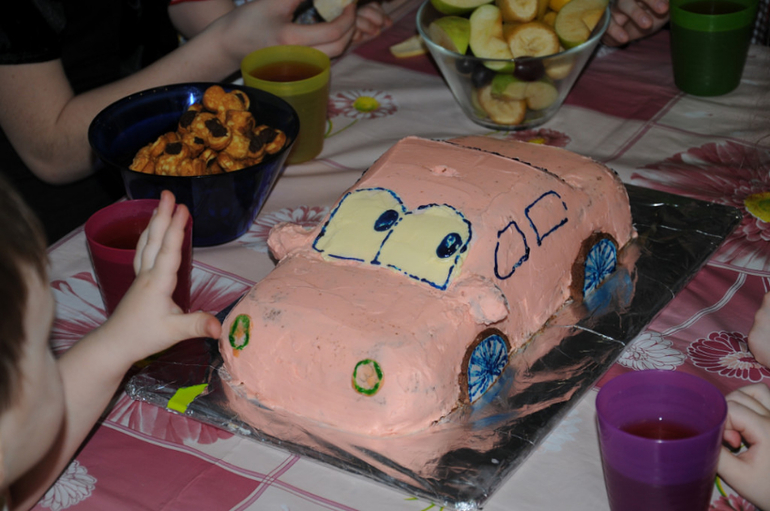 7. А это позволю выделить отдельным пунктом, поскольку все-таки я не мастер и такие вещи для меня событие)) Пух на годовасие первенцу, машина на двухление младшенькому. Стряпала сама, но из готовых коржей. Пух был бесподобен, машинка сладковата чуть.
