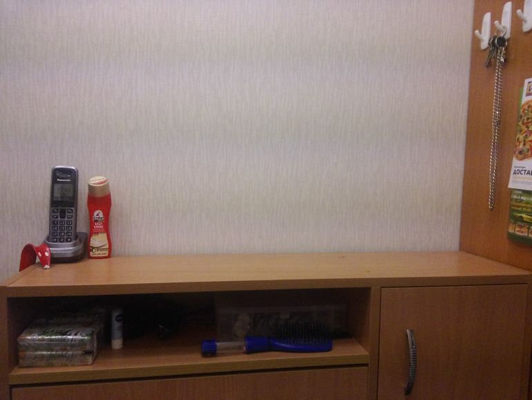 2. Обувная тумба в прихожей. Здесь я хулиганю периодически. Бросаю бумажки, чеки, деньги, мусор, который с улицы остался (пустые коробочки из-под сока, обертки и прочее). Не так много, но всё же... Успела за 2 минуты всё убрать.