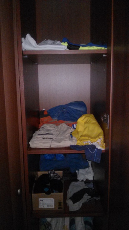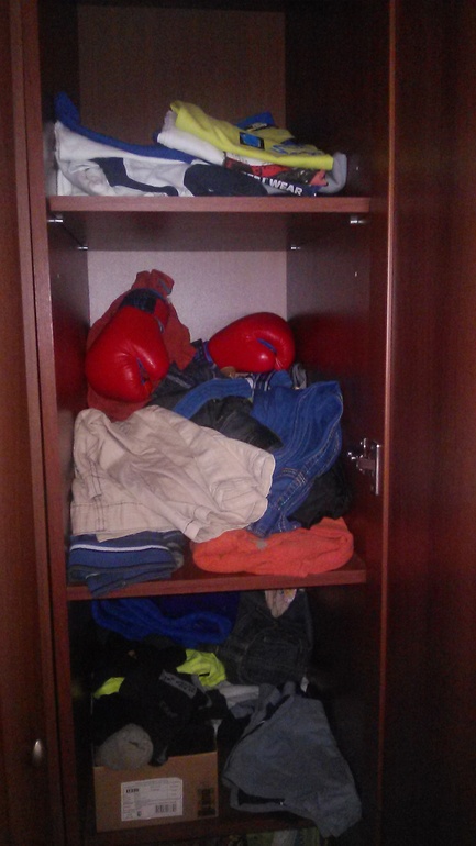 Поубирала все маленькие,изношенные и ненужные вещи.Составила список покупок для сына.Фото до и после: