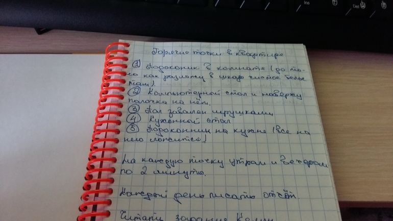 Утром разобрала не все 5 точек а только две подоконник на кухне и часть стола. На каждую ушло по 5 минут. Вечером продолжу и допишу отчет с фотографиями.