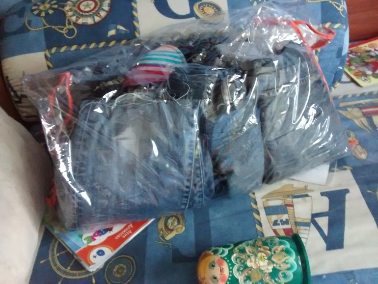 Это вещи мужа, в основном джинсы. Выкидывать он их не хотел - ведь нужно в чем-то чинить машину))) - но так как он о них и не вспомнил, пора избавится от пакета. Попробую пристроить за неделю, не получится - в среду выкину.