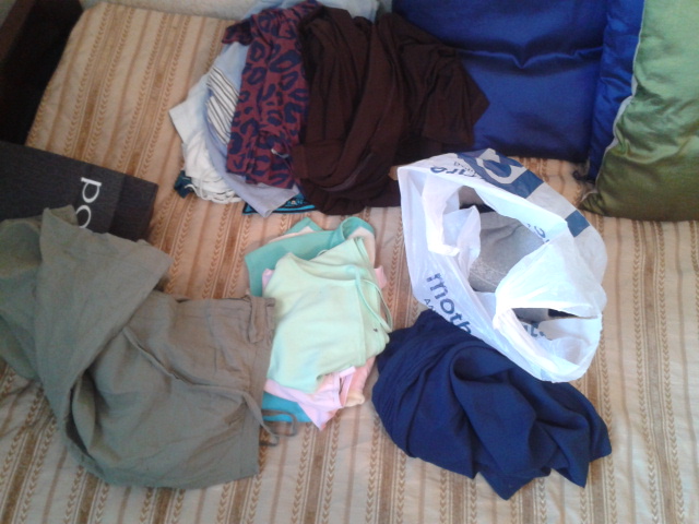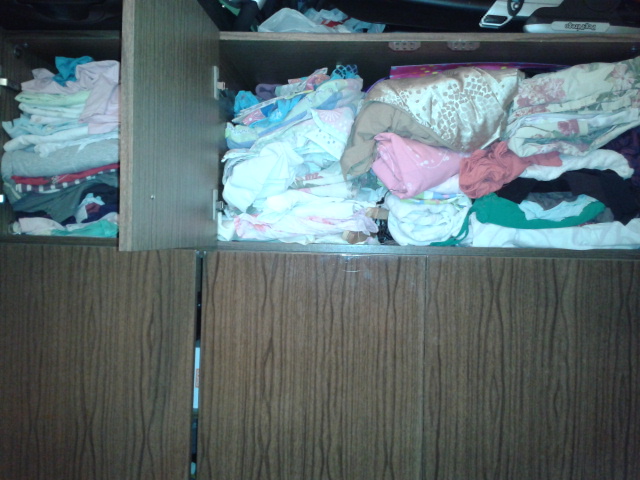Там лежали в одном неглаженные вещи (постельное и мои кофты-блузки - все проверила и сложила покрасивше - глажка по расписанию и что успеваю)) ). Во втором (слева который) - вещи не по сезону - вытащила, перемерила - все что можно носить, оставила - остальное на пристрой (плюс одну юбку на выброс точно - слева на фото).