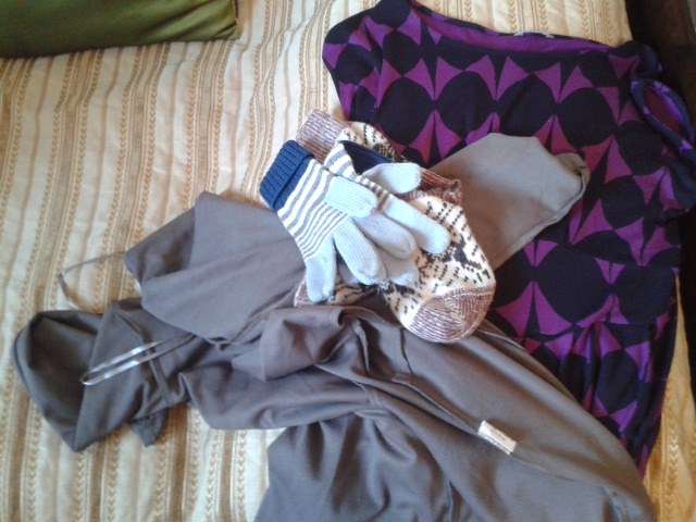 Еще стопочка на починку - два платья плюс носки-перчатки.