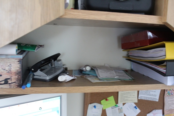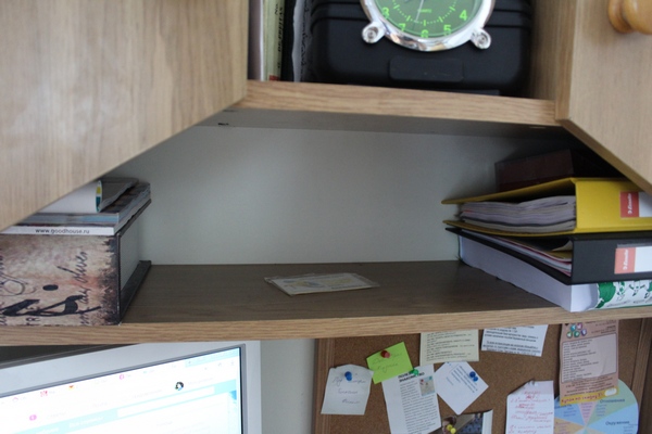 Еще любимая "мусорка" - полка над монитором.