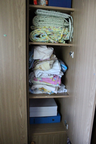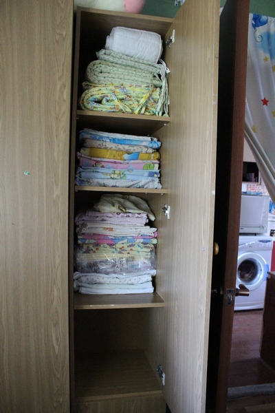 Взрослое постельное и полотенца были уже разобраны, размусорены и докуплены. Детское же пугало )))