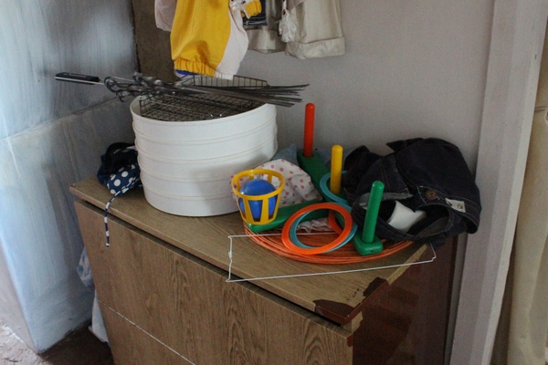 Ну и самое любимое семейное место - тумбочка для обуви в коридоре. Она уже пустая, муж получил задание, что сделать вместо нее - лавку с открытыми ячейками для уличной обуви. Но вот наверху пока собирается все, что можно и нельзя. Шашлычное помытое надо вынести на место после вчерашнего, лотки суховея ждут загрузки яблок, остальное просто не на месте.