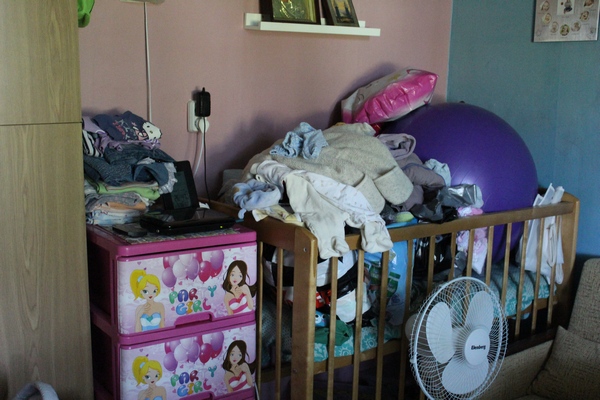 Ну и еще фронт работ на сегодня (и не ХС в общем-то, обычно в кроватке только фитбол, это мы в субботу привезли наше приданное, надо разобрать-рассортировать)