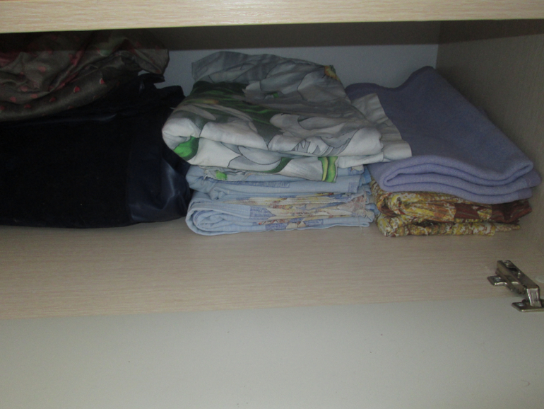 Разобрала залежи с постельным бельем(чего там только не было)Собрала всё старье и недокомплекты и увезла отцу.Купили один новый комплект и сейчас у нас 3 полноценных комплекта, 2 комплекта для гостей и 2 комплекта на кровать доче.