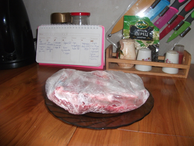 что на ужин- фасолевый суп; размораживаю мясо и на столе заметно наше меню на неделю