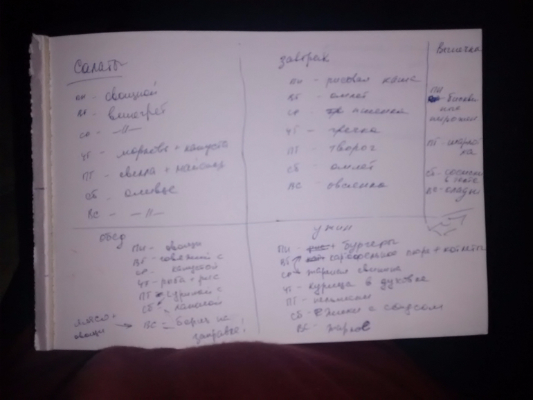 Набросала черновик меню и список покупок (ЗК тоже как раз включало список покупок для зоны 3)