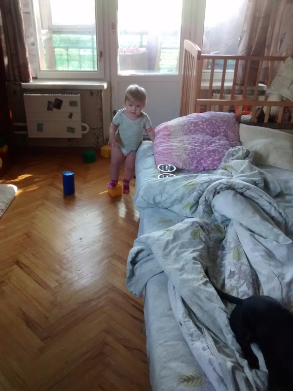 Пришлось быстро вставать, одеваться, привязывать дочку в слинге и выводить собаку на 5-минутную прогулку. А потом уже все пошло более-менее по плану :)