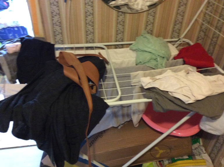 Хотспотов у меня в квартире три-четыре, и еще несколько захламляют ся от времени ко времени. Хотспот номер 1: внезапно сушилка для белья. Она стоит в прихожей, постоянно разложена и на ней, собственно, сушится белье. Т.к. прихожая - очень проходное место, на нее вечно наваливается всякое, начиная от элементов верхней одежды (кардиган, жилет) и ключей до моего айпеда и вообще уже странных вещей вроде коробки с книгами и пакета из супермаркета. Решение: ??? Соблюдать нормально ритуалы, каждый день снимаю белье с сушилки и, очевидно, складываю ее. Ну хотя бы на несколько часов, но всё же.