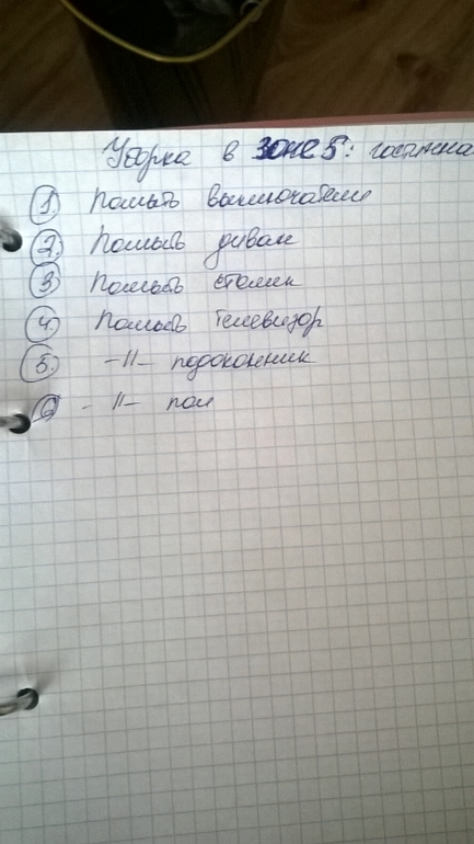 Отчитываемся по заданиямИтак, список гостиной очень маленький, но дело в том, что комната очень маленькая и мебели почти нет(такой стиль), диван, маленький столик, на нём телик и многоооо цветочков) В спИске последний пунктом кстати добавила: помыть все цветы)