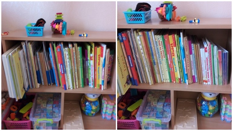 В рамках 5 минут избавления от хлама я привожу в порядок полку с книгами в детской.