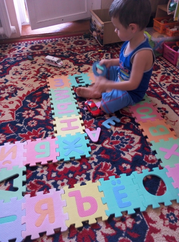 Домой приходим в 11-50 и сразу идем играть. Чиним дорогу - учим буквы )))